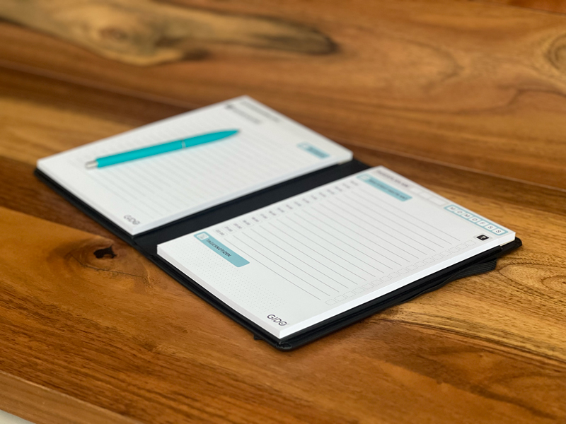 Mit ihm erhältst du zwei Blöcke mit unterschiedlichen Funktionen in einem Buch. Das eröffnet dir komplett neue Möglichkeiten, denn so siehst du immer alles auf einen Blick anstatt in deinem Tagesplaner hin und her blättern zu müssen.